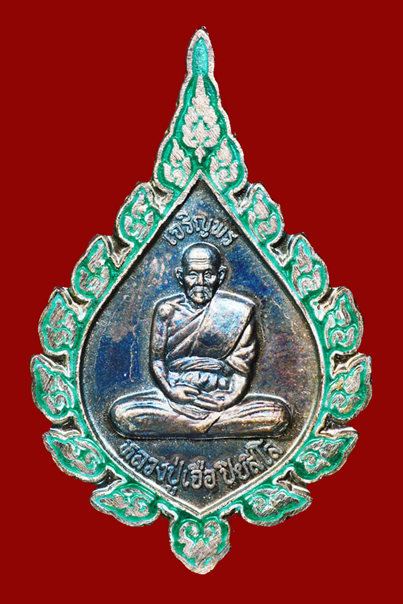 เหรียญรูปพัดยศ รุ่นเจริญพร-เนื้อเงินลงยาสีฟ้า..หลวงปู่เจือ วัดกลางบางแก้ว