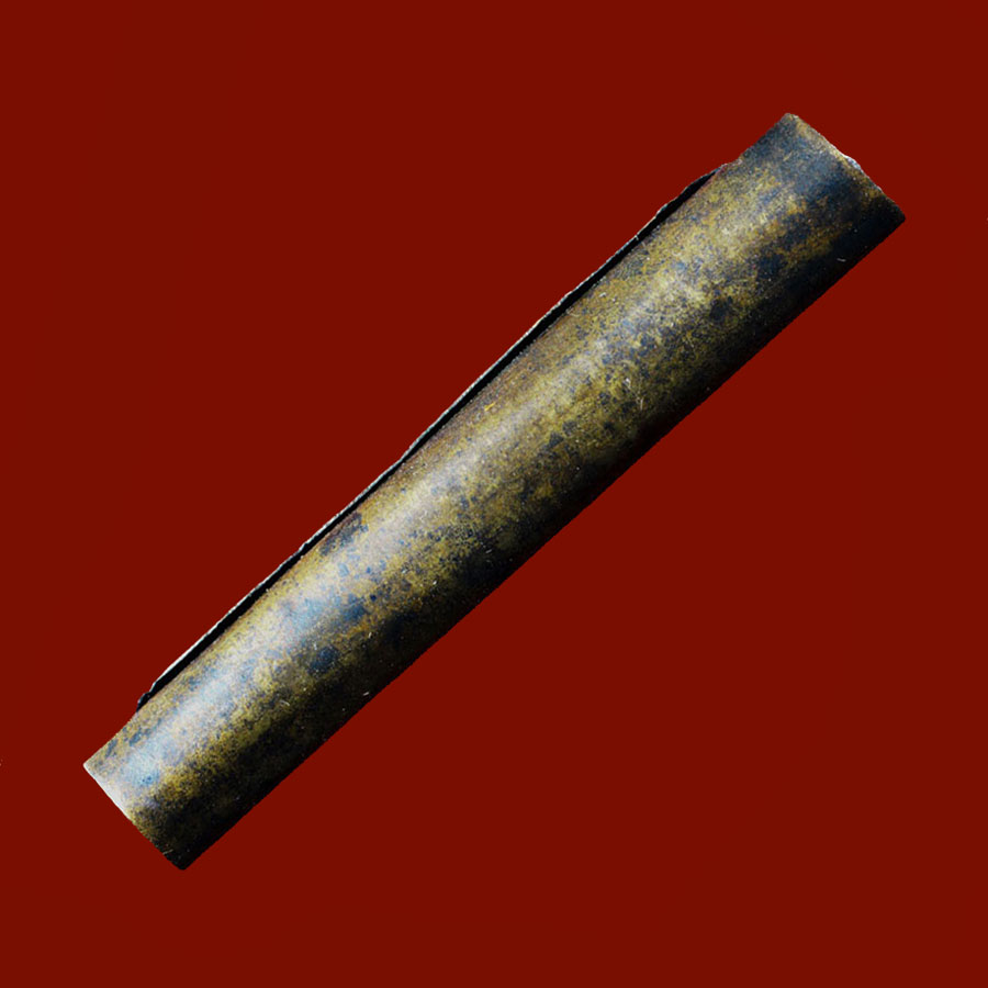 ตะกรุดโทนหลวงปู่บุญ วัดกลางบางแก้ว เนื้อทองแดง ขนาด 2 นิ้ว 1 หุน ดอกนี้เดิมทีจะลงรักถักเชือกปิดมิดชิดแต่เนื่องจากเชือกชำรุดไปมากเลยตัดสินใจเอารักเชือกออกครับ เนือทองแดงเก่าจัดส่องกล้องจะมองเห็นเส้นคารางยันต์หลวงปู่บุญ ด้านในได้ชัดเจนครับ