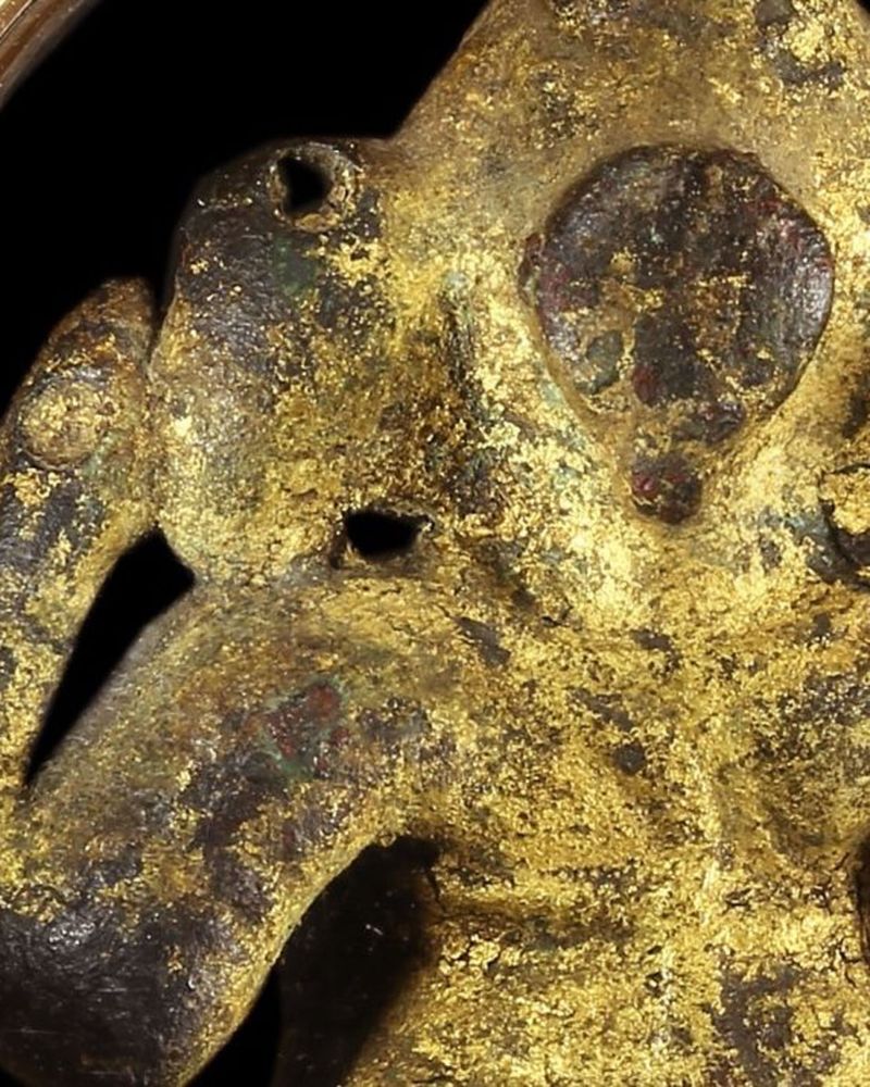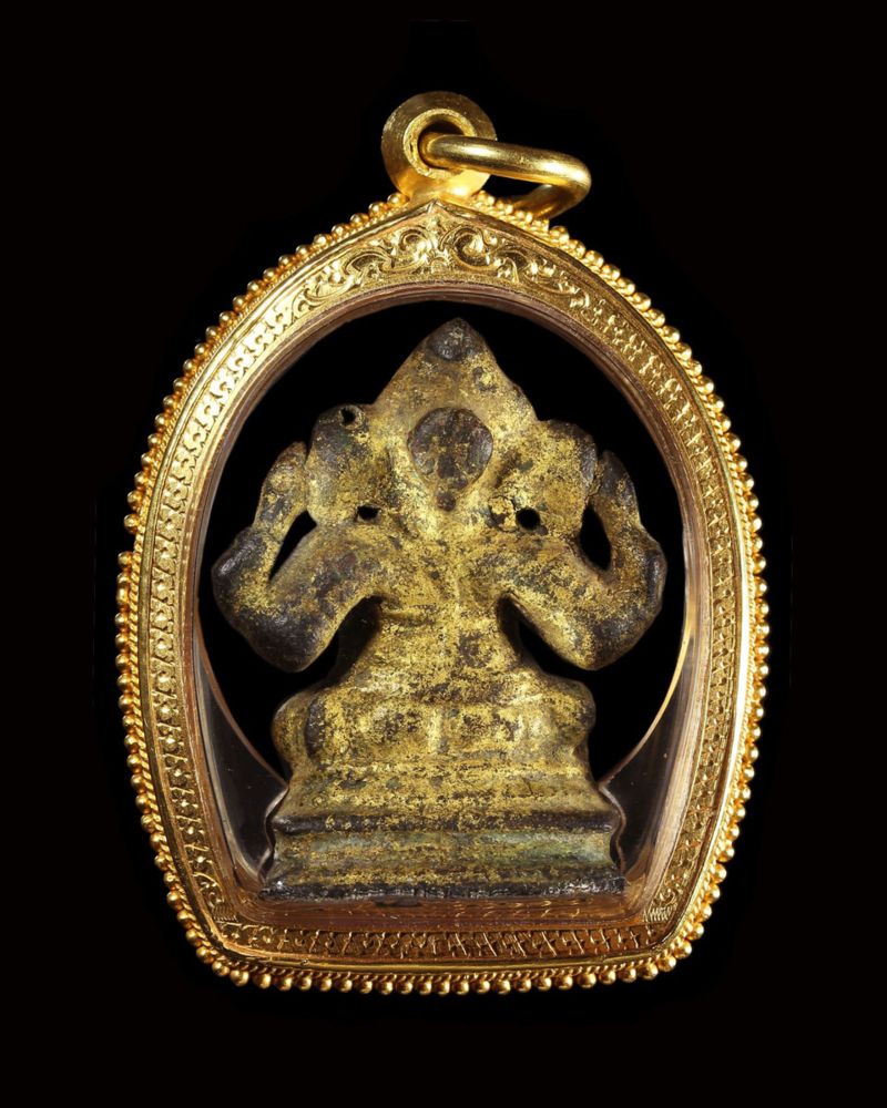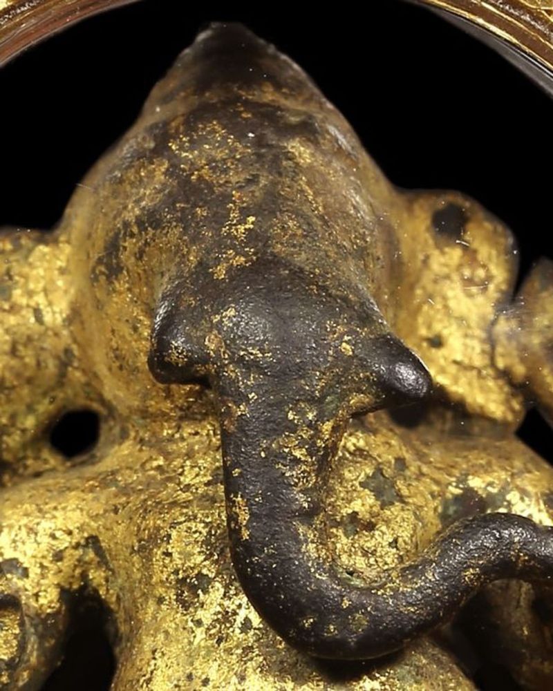พระพิฆเนศ กรุเจดีย์วัดครุฑธาราม จ.พระนครศรีอยุยธยา ขนาดหน้าตัก 1 นิ้ว ลักษณะศิลป์เป็นแบบโจฬะของอินเดีย ราว คศ. 1000 ทองน่าจะปิดตอนลงกรุ..เก่ามากและหายากมากด้วยครับ