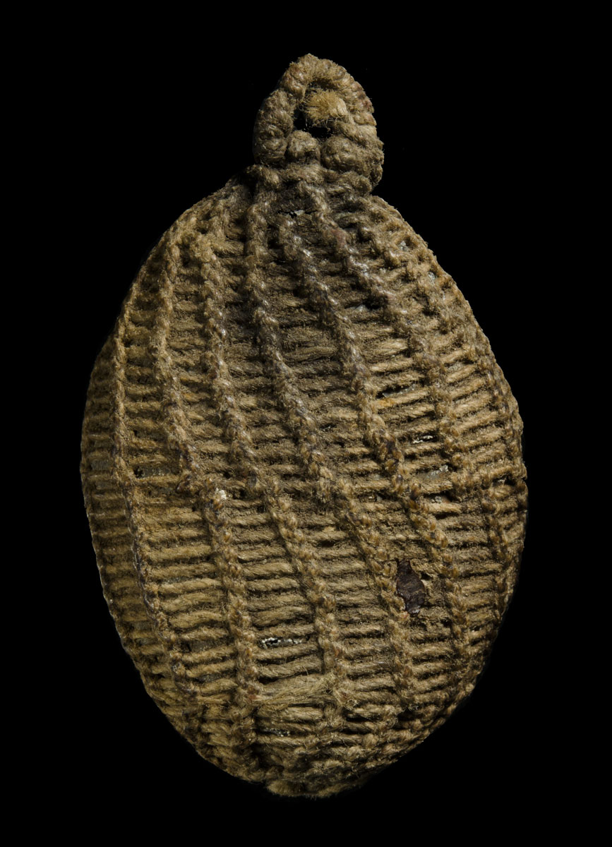 สำหรับเบี้ยลูกนี้การถักเชือกวงการเรียกว่าลายมะเฟืองทอง ซึ่งก็เป็นลายถักมาตรฐานนิยมอีกแบบหนึ่งครับ..อยู่ในยุคกลางๆปลายๆของท่าน สภาพสวยสมบูรณ์มากครับมีการลงรักแต่รักได้ลอกออกไป (ยังหลงเหลือเศษรักติดอยู่ครับ)