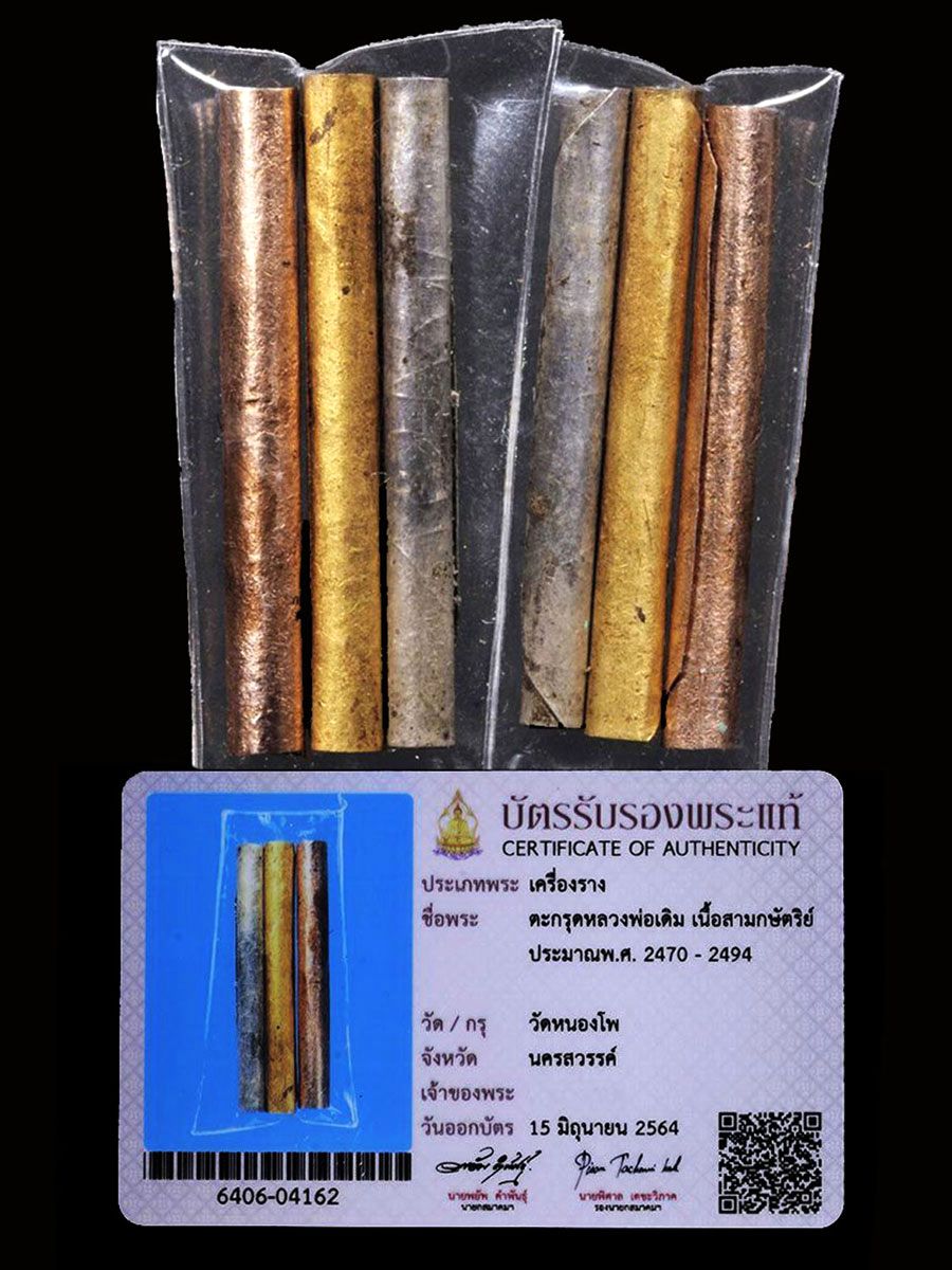 ตะกรุดสาริกาสามกษัตริย์ (ทองคำ เงิน นาค) หลวงพ่อเดิม วัดหนองโพธิ์ จ.นครสวรรค์ สภาพสวยเดิมๆ หายากอยู่ครับ