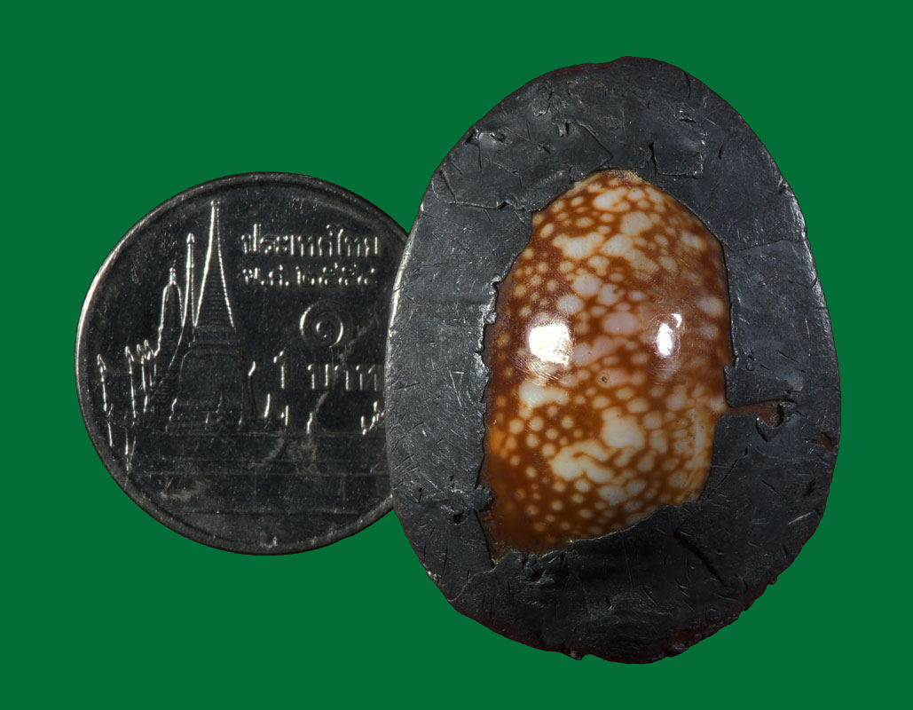 สำหรับเบี้ยลูกนี้เป็นเบี้ยเปือยๆ..เป็นเบี้ยยุคกลางปลายๆของท่าน สภาพสวยสมบูรณ์เดิมมากเก่าเก็บไม่ผ่านการใช้ หุ้มตะกั่วทุบแล้วลงยันต์พระเจ้า 5พระองค์ชัดเจนครับผม