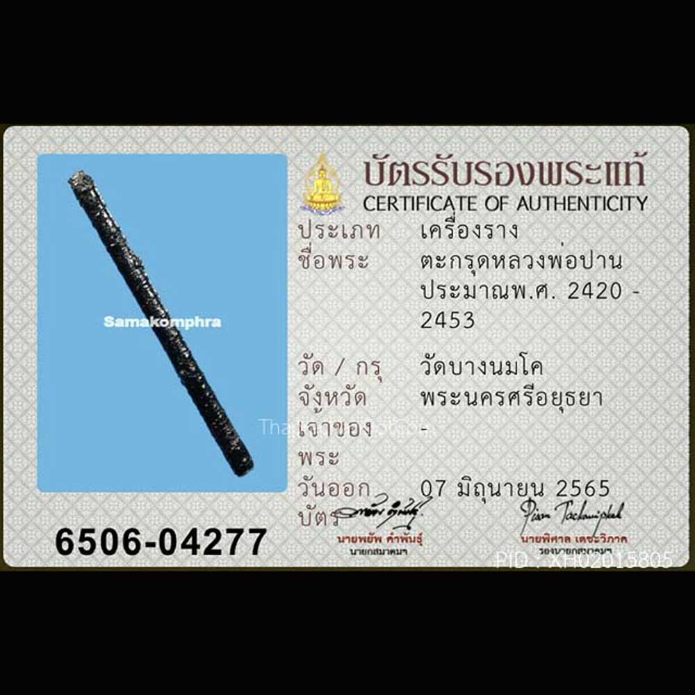 ตะกรุดยันต์เกราะเพชร หลวงพ่อปาน วัดบางนมโค จ. พระนครศรีอยุธยา (เนื้อเงิน) ขนาดยาว 5นิ้ว