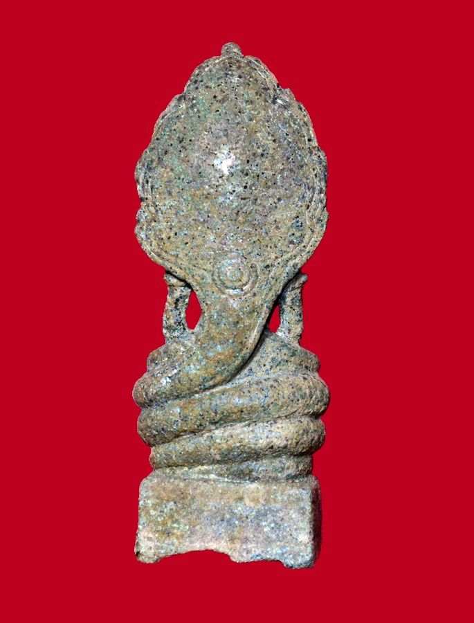 พระนาคปรก เนื้อสำริดสนิมหยก สมัยลพบุรี ขนาดหน้าตัก 1 นิ้ว-สูง 3 นิ้ว