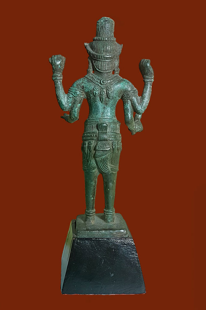 เทวรูปอวโลกิเตศวรสี่กร เนื้อสำริดสนิมหยก ศิลป์สมัยลพบุรี (องค์ที่1)