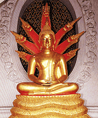 มีพญานาคแผ่พังพานปกคลุมเบื้องพระเศียร